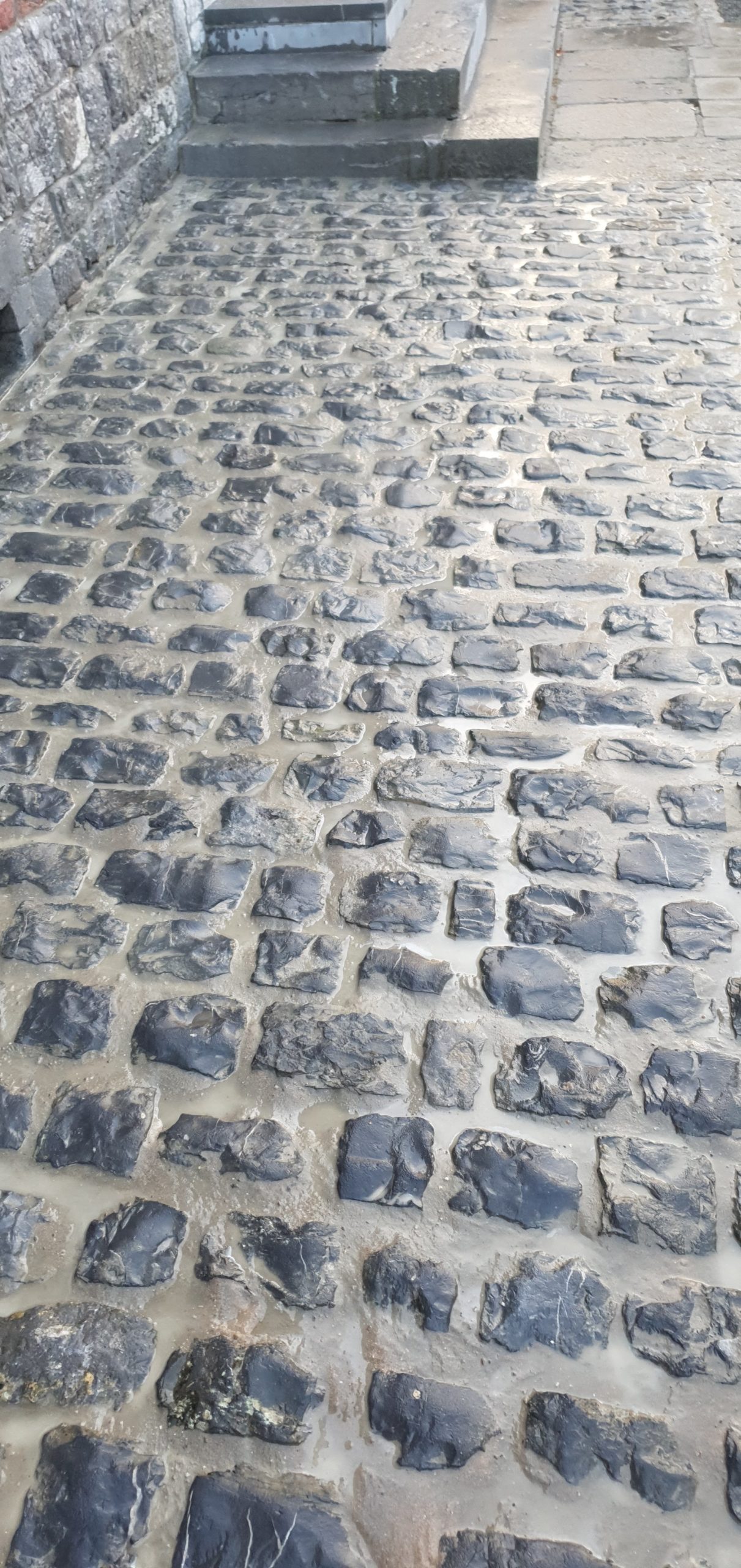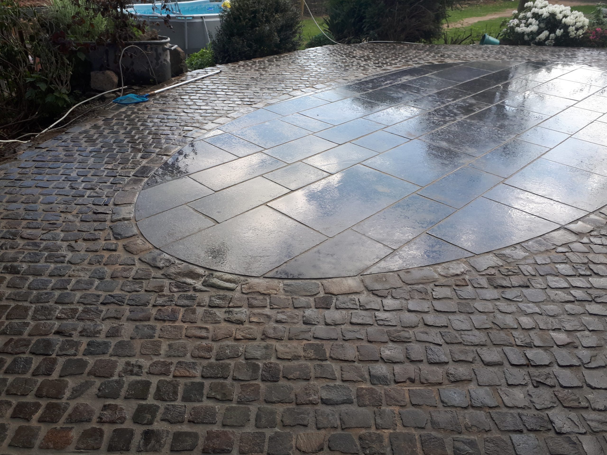 En choisissant des pavés anciens en porphyre, vous investissez dans un matériau à la fois écologique, car réemployé et recyclable, et esthétique, qui valorise durablement votre patrimoine.