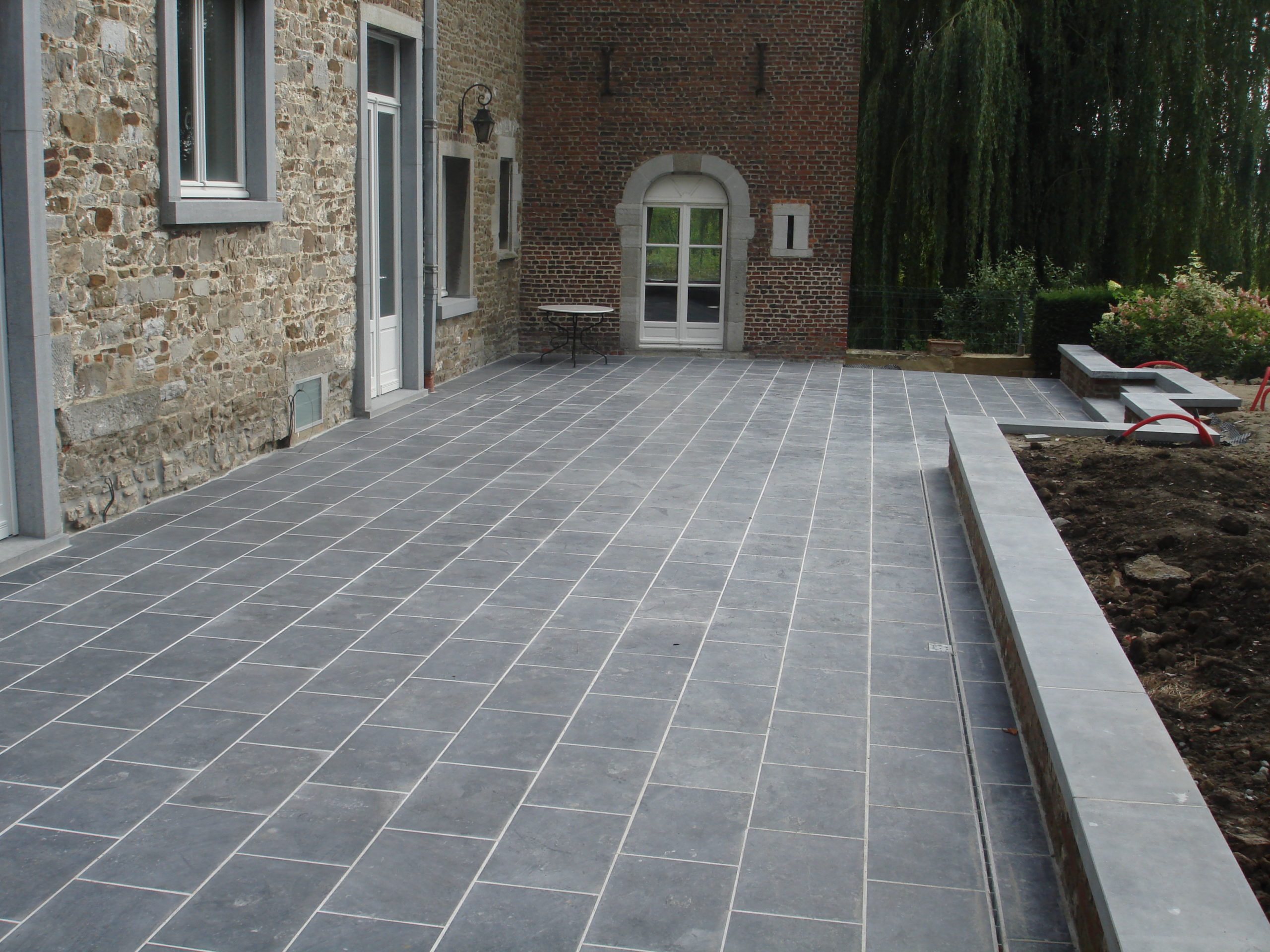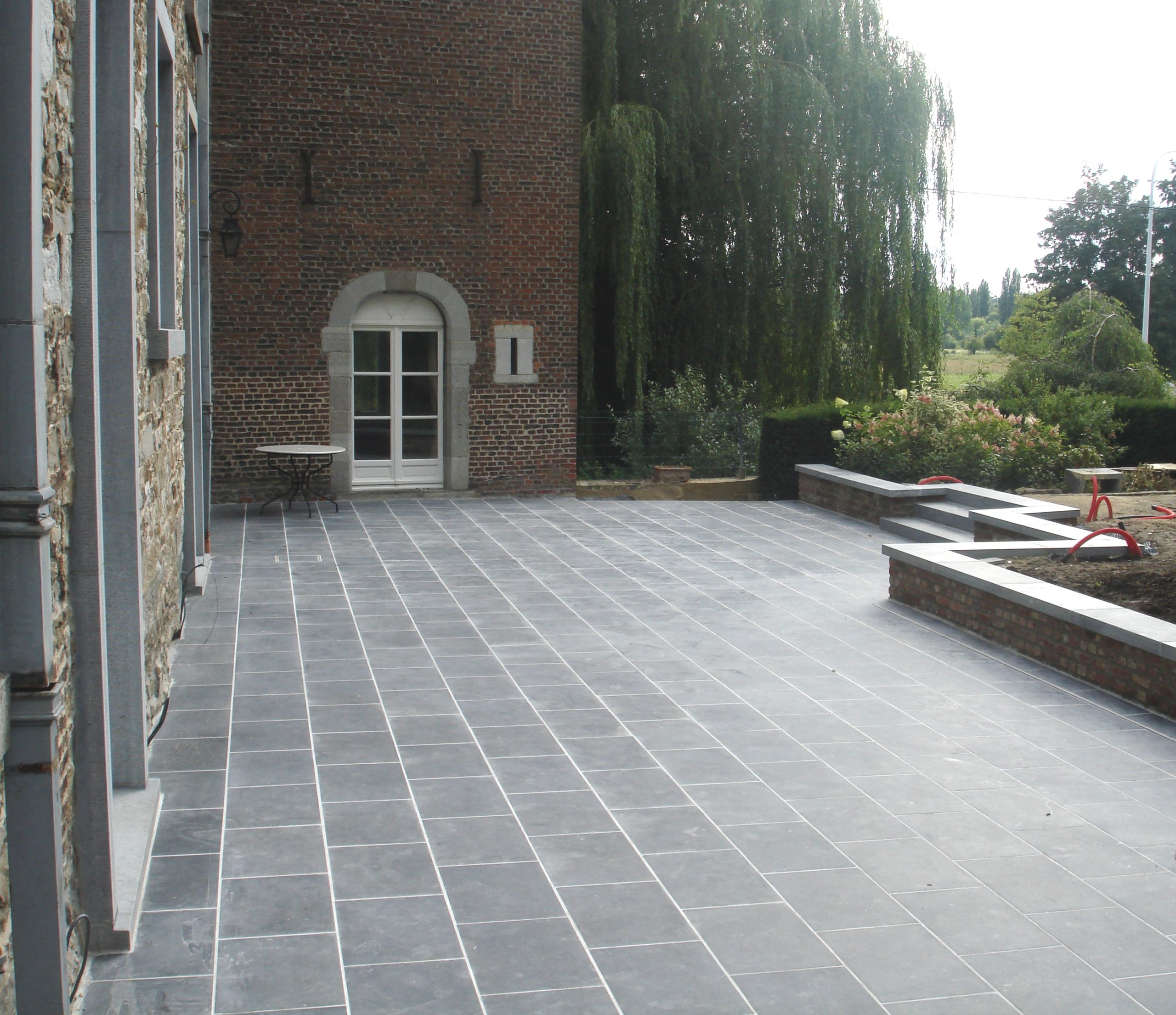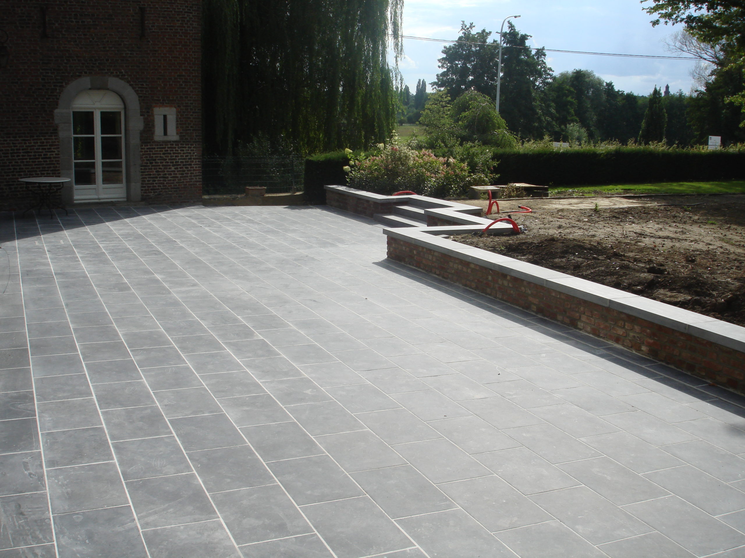En septembre 2025, notre équipe a réalisé un chantier d’aménagement extérieur en province de Namur, consistant en la création d’une terrasse en dalles de pierre bleue belge adoucie 60x40x3 cm. Ce matériau noble, reconnu pour son esthétique intemporelle, sa solidité et sa résistance aux intempéries, s’intègre parfaitement dans tout type de jardin ou de devanture.