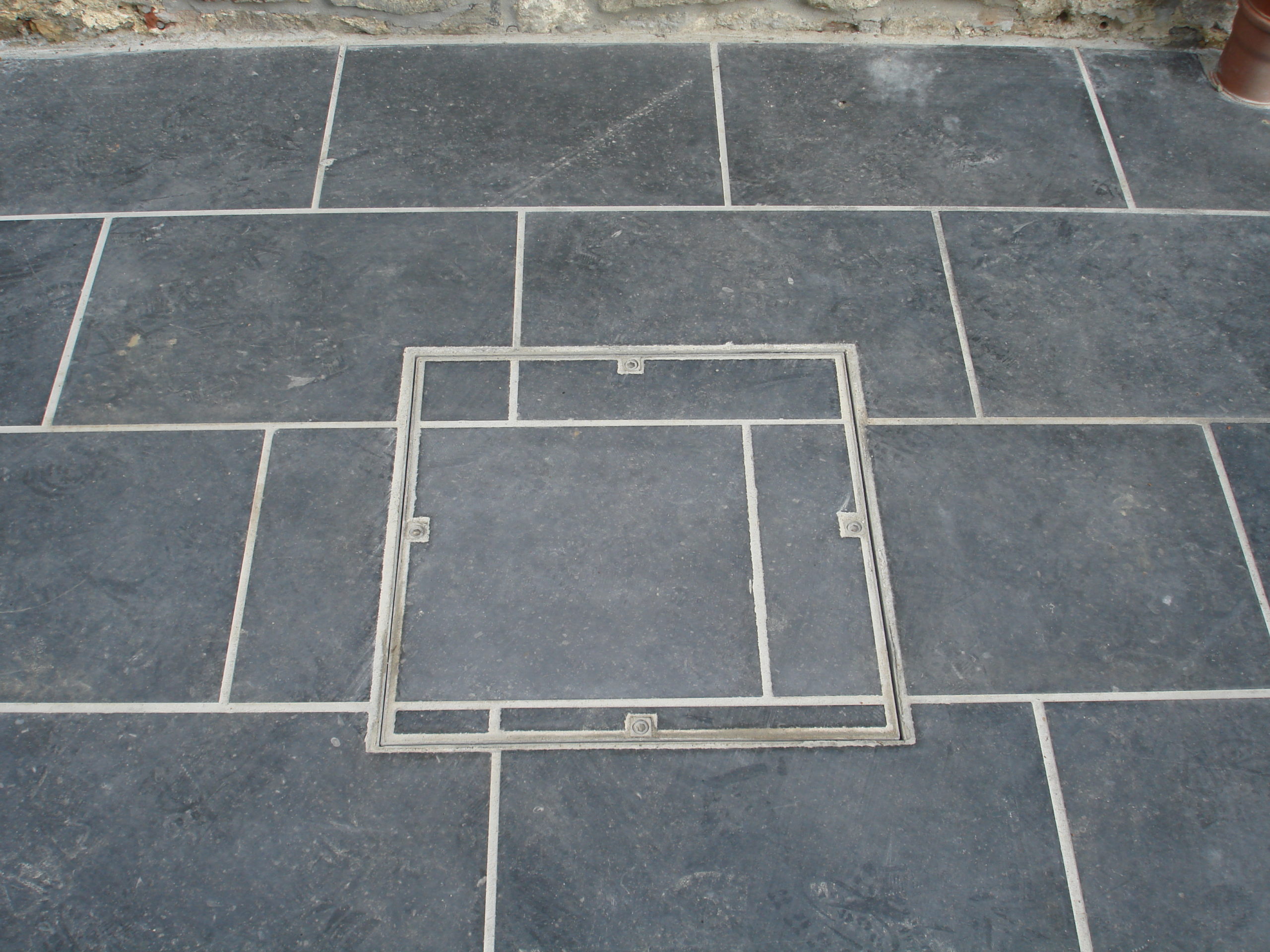 Les dalles ont été posées au traditionnel, une méthode qui garantit la stabilité et la longévité du dallage. Pour assurer une finition impeccable, nous avons également procédé à la coulée de joints hydrofuges sans retrait, évitant ainsi les infiltrations d’eau et offrant une durabilité optimale face aux aléas climatiques.